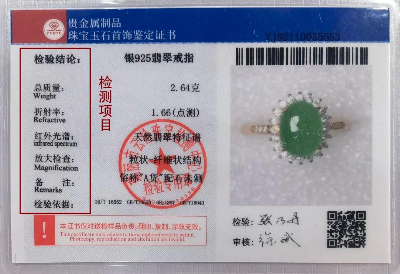 低调看球珠宝玉石首饰鉴定证书背面有“检测项目”